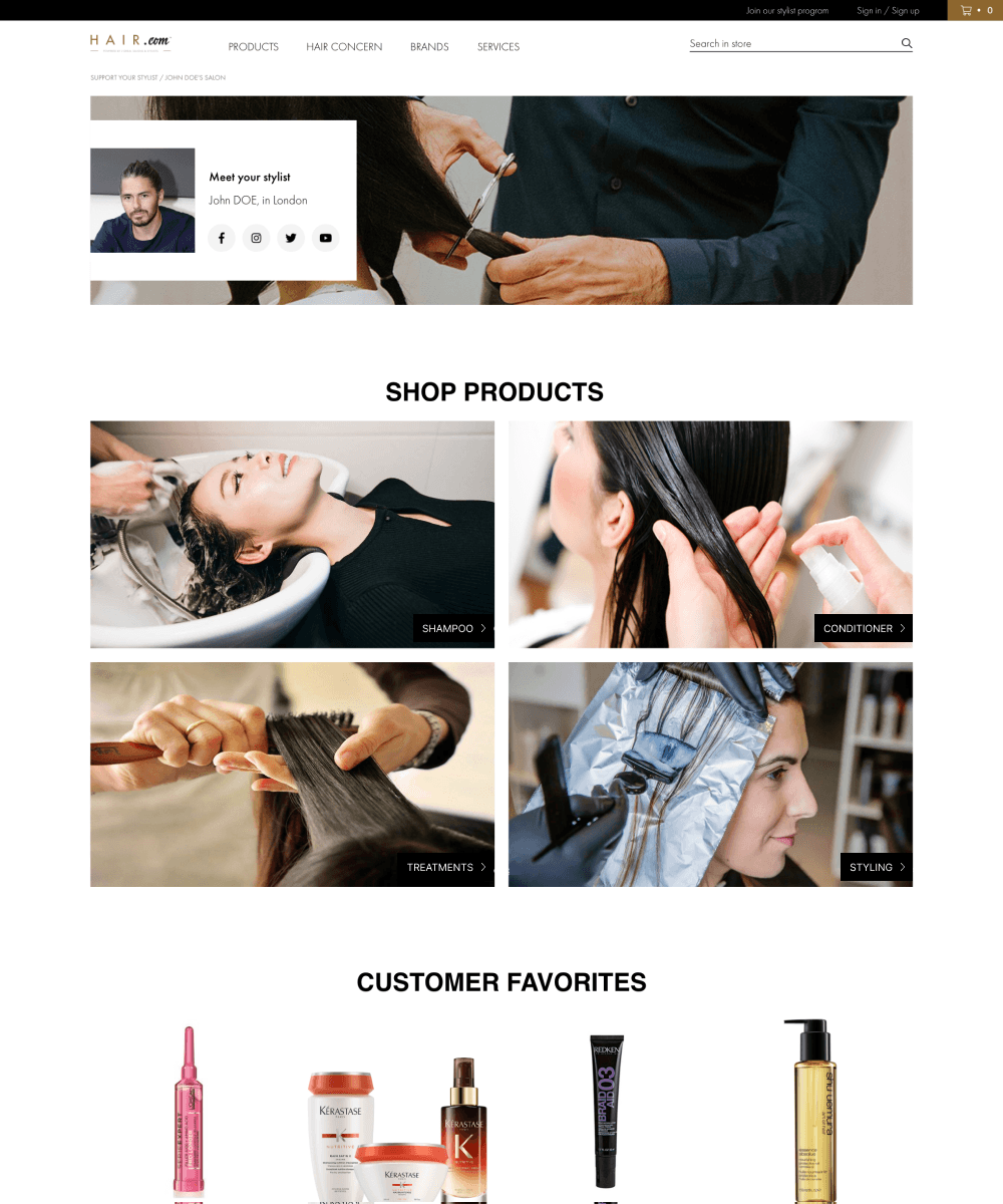 This platform had to bridge two intents in one experience: buying products online and finding a local professional for services. Beyond the core commerce journey, it included nearby professional search and professional profile pages that supported discovery and confidence. The challenge was unifying retail and local service flows into one coherent path that still felt brand consistent.